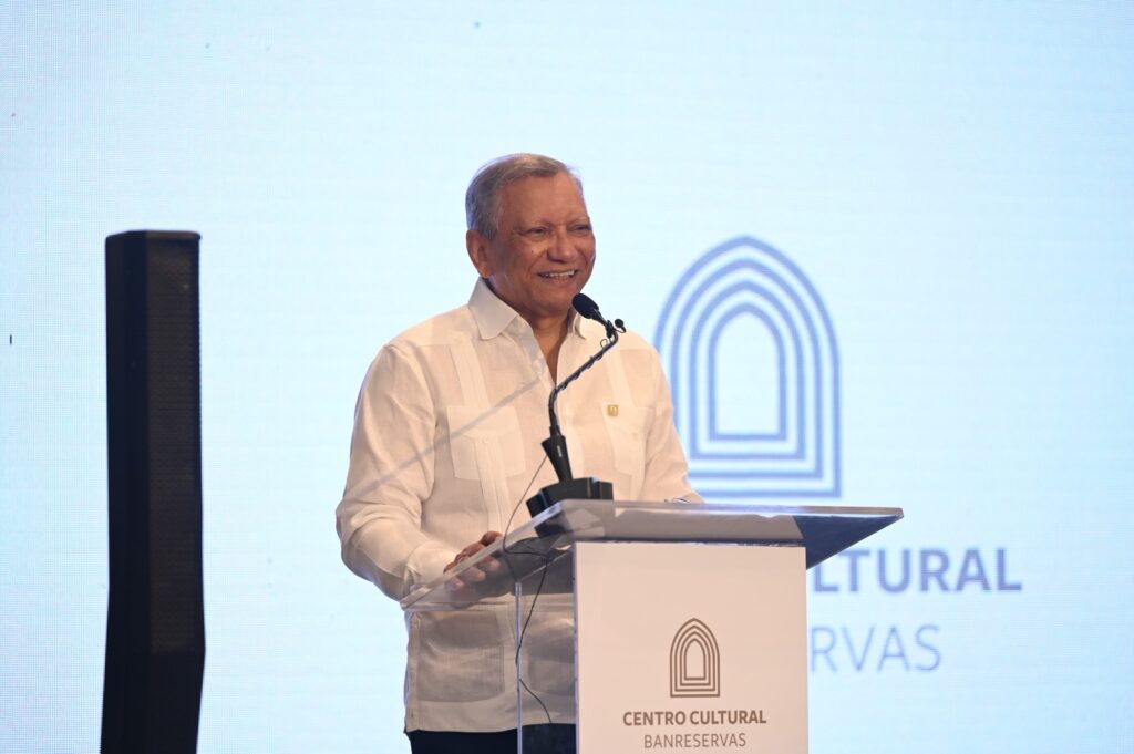 El presidente ejecutivo de Banreservas, doctor Leonardo Aguilera, habla en la inauguración del Centro Cultural Banreservas de Santiago con la presencia del presidente Luis Abinader.