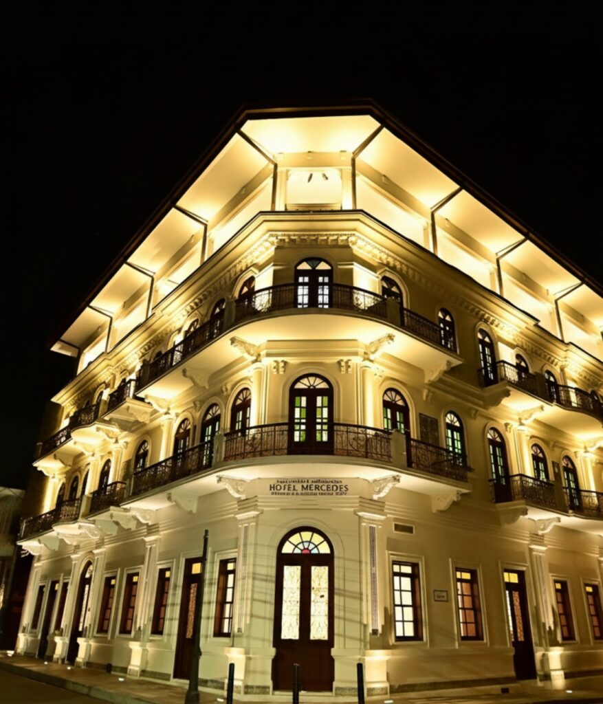 El Hotel Mercedes fue inaugurado el 9 de abril de 1929. Construido en concreto armado, contaba con 44 habitaciones distribuidas entre los pisos segundo y tercero, comedor en la primera planta y una terraza en el cuarto nivel, desde donde se disfrutaba una vista privilegiada de la ciudad.