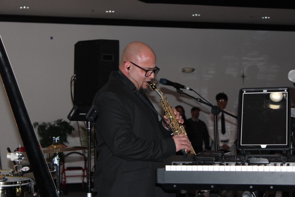 Uno de los momentos más solemnes de la noche fue la interpretación instrumental de los himnos nacionales: Carlos Puello ejecutó en trompeta el Himno Nacional Dominicano, mientras Moisés Soto interpretó en saxofón soprano el Himno Nacional de los Estados Unidos, simbolizando la hermandad entre ambas naciones.