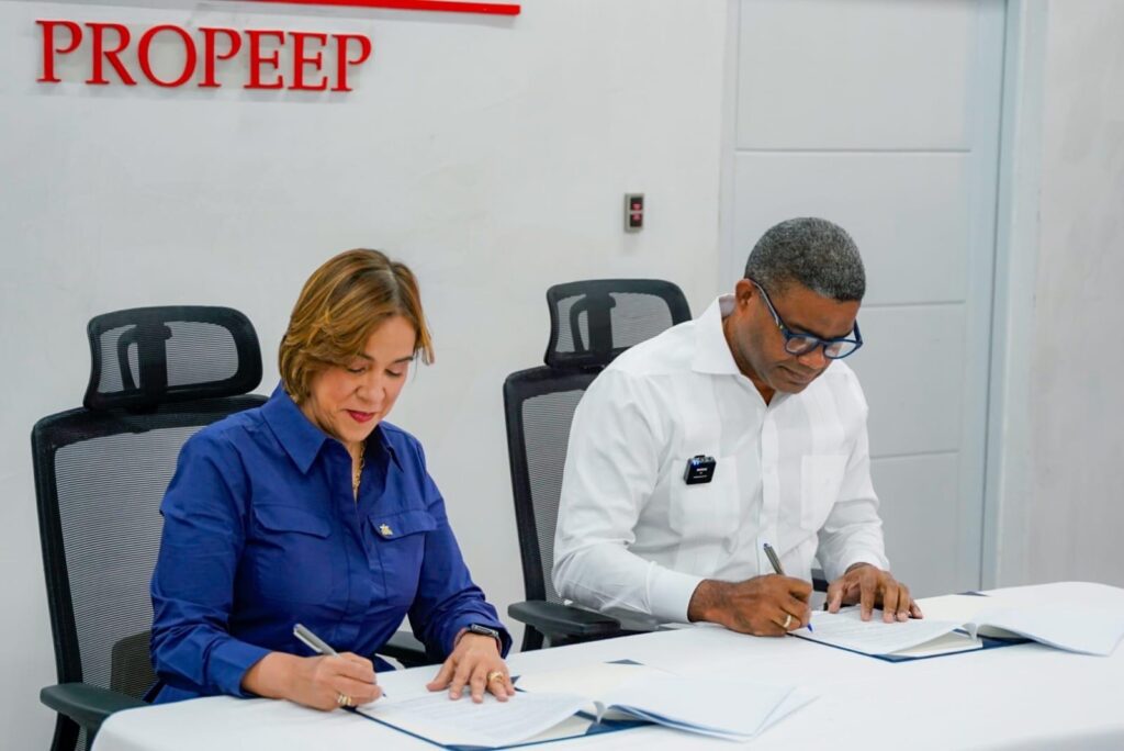 El convenio fue firmado por Robert Polanco, director de Propeep, la presidenta ejecutiva de Banco de Ahorro y Crédito Adopem, Mercedes Canalda de Beras-Goico y la vicepresidenta de Negocios, Eva Luisa Carvajal de Toribio.