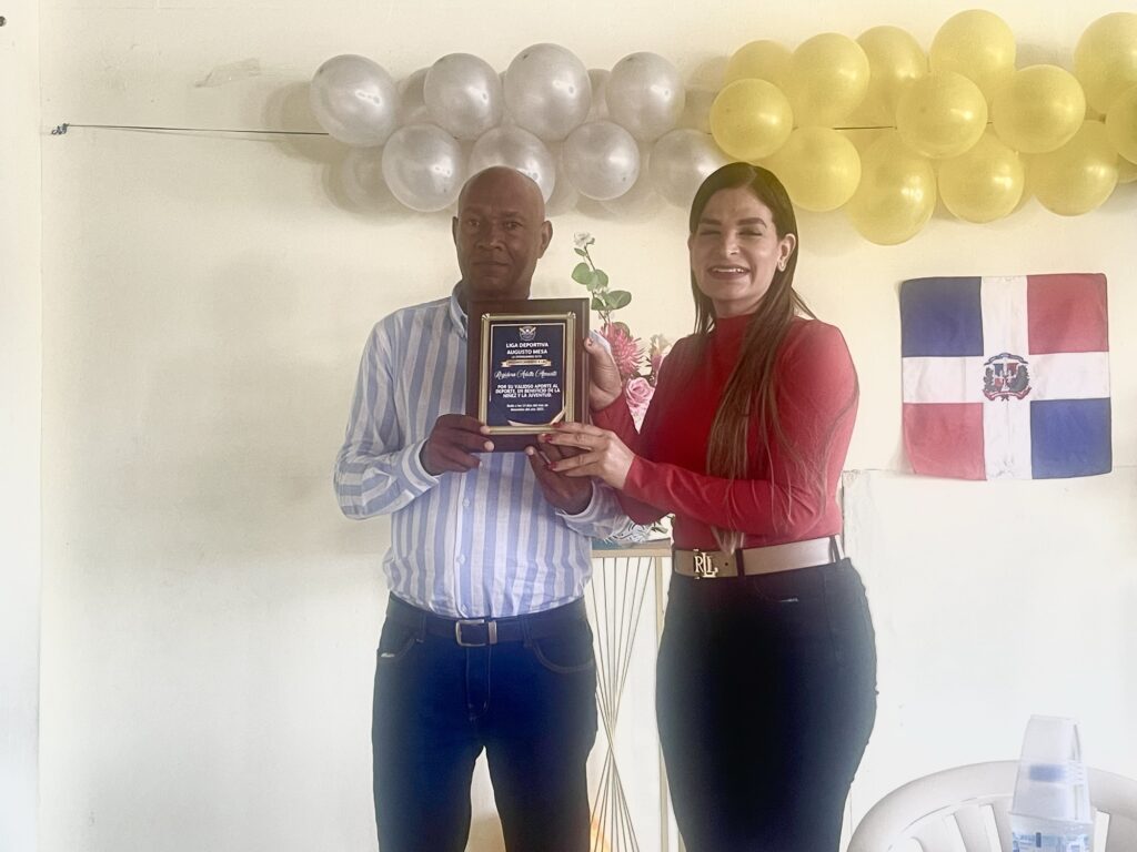 La Liga Deportiva de Béisbol Augusto Mesa reconoció a la regidora del Partido Revolucionario Moderno (PRM), licenciada Arlette Almonte, por sus valiosos aportes al desarrollo del deporte en beneficio de la niñez y la juventud del municipio, durante una emotiva ceremonia celebrada recientemente.