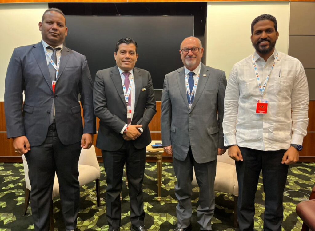 Wailly Lewis y Raimundo Rodríguez Javier, subdirector de Protección Social y director de Planificación de la DDSS, respectivamente, en compañía del embajador dominicano en Catar, Georges Bahsa Hazim, se reunieron con el ministro de Desarrollo Social y Asistencia, Wellington Días, y el secretario de Inclusión Socioeconómica, Luiz Carlos Everton, ambos de Brasil, con quienes conversaron sobre el técnico para robustecer el rol de República Dominicana dentro de la Alianza Global.